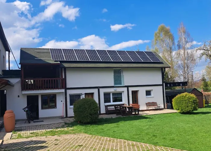 Die Gäste dieser Villa können ihre eigenen Mahlzeiten in einer kompletten Küche zubereiten. Der Flughafen Poprad-Tatry ist in 51 Minuten mit dem Auto zu erreichen. Gästen stehen ein Swimmingpool und ein privater Gartens zur Verfügung.